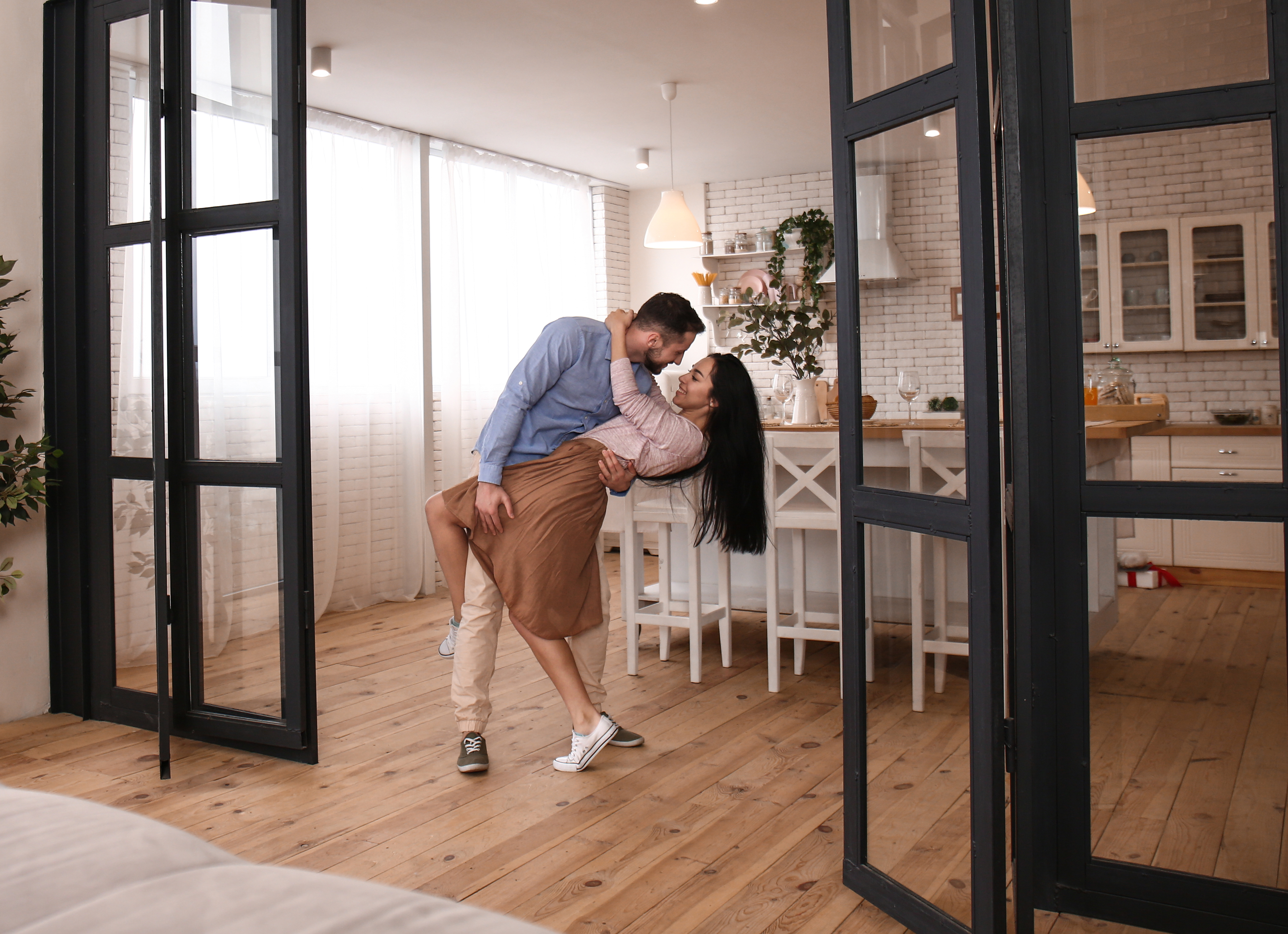Классический дизайн и современные раздвижные механизмы – отличное решение для зонирования традиционного интерьера.